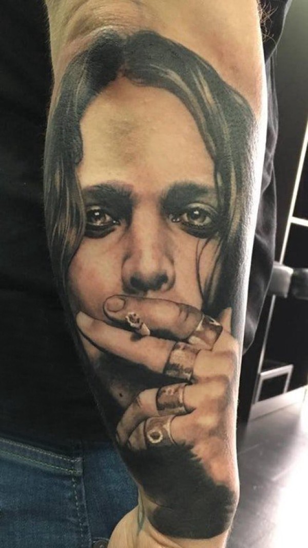 人物肖像纹身 男生手臂上写实的人物肖像纹身图片