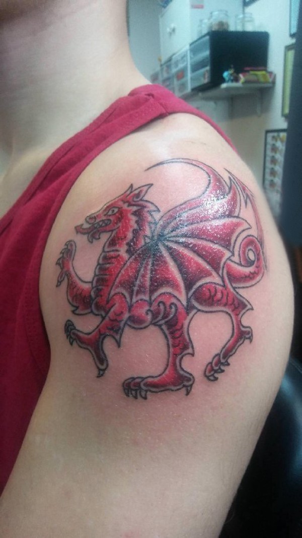 飞龙纹身图 男生肩膀上彩绘的飞龙纹身图片