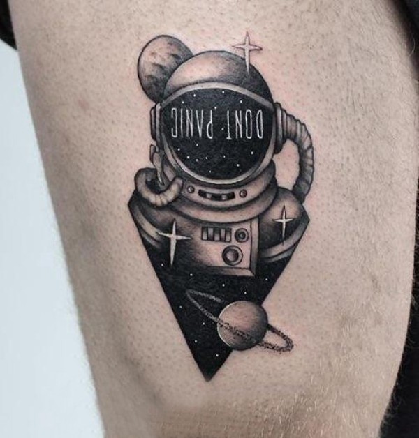 宇航员纹身图案 男生小腿上黑灰的宇航员纹身图片