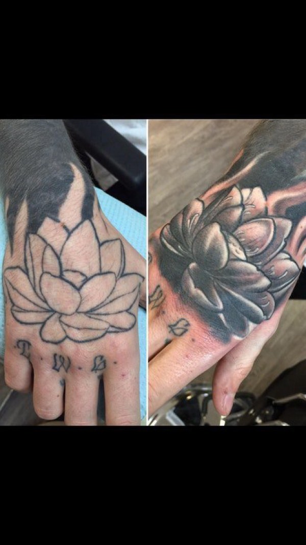 莲花纹身小图 女生手背上渐变的莲花纹身图片