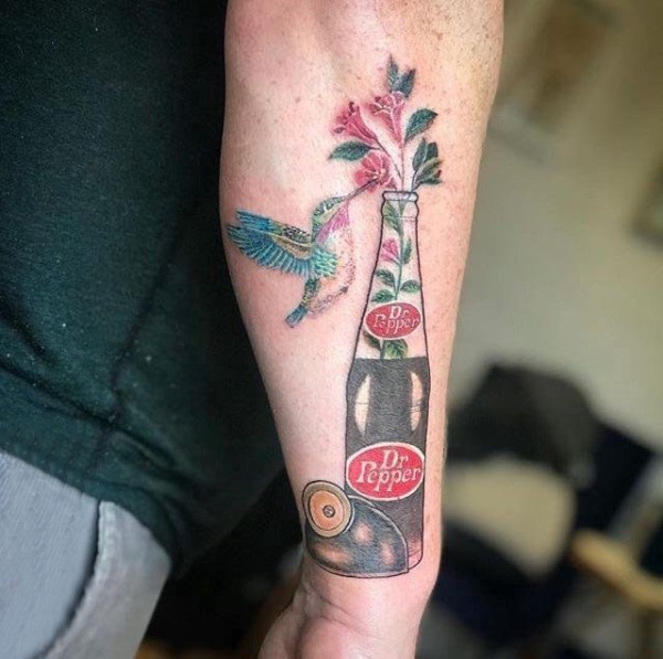 可口可乐纹身瓶 男生手臂上可口可乐纹身瓶和鸟纹身图片