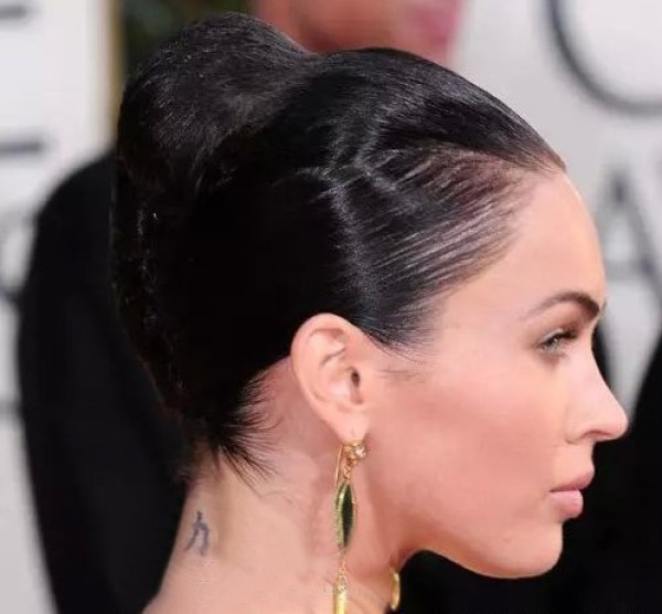 国际纹身明星 Megan Fox颈部黑色的汉字纹身图片