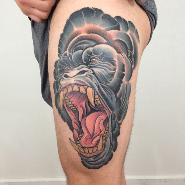 大猩猩纹身 女生大腿上创意的大猩猩纹身图片