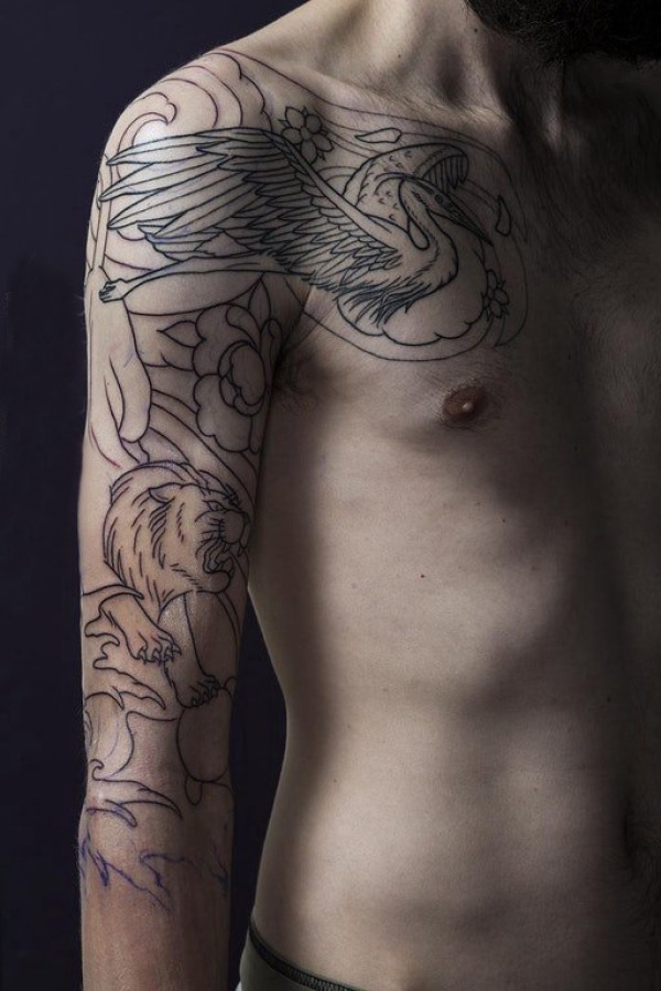 百乐动物纹身 男生手臂上简约的狮子和鸟纹身图片