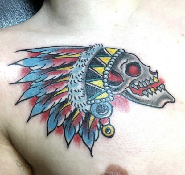 印第安人纹身 男生胸上彩绘的印第安人纹身图片