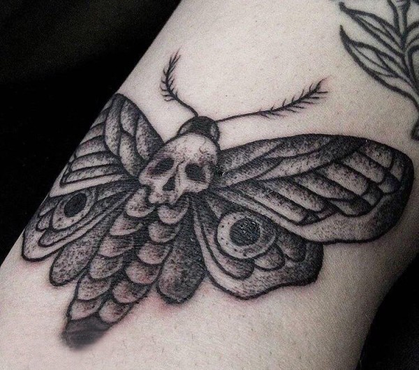 纹身手臂内侧女 女生手臂上骷髅和飞蛾纹身图片