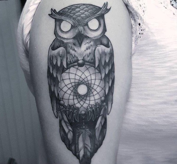 纹身猫头鹰 男生大臂上创意的猫头鹰纹身图片