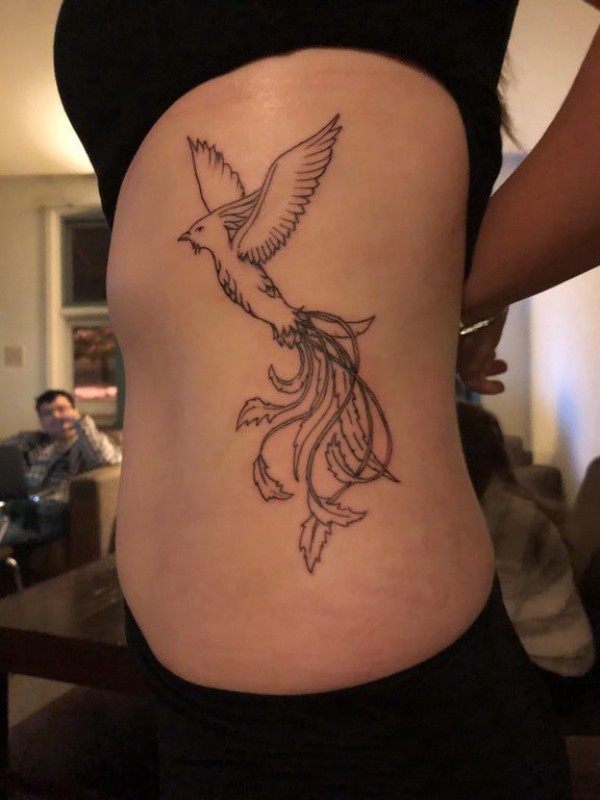 纹身火凤凰 女生侧腰上极简的凤凰纹身图片