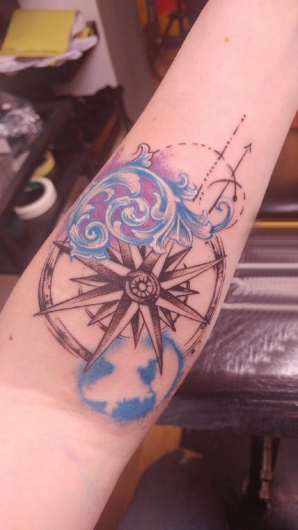 纹身浪花 女生手臂上小清新的浪花纹身图片