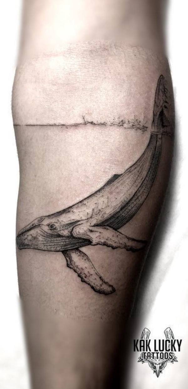 纹身鲸鱼 男生手臂上创意的鲸鱼纹身图片