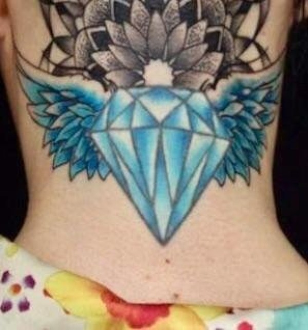 纹身钻石 女生后颈彩绘的钻石纹身图片