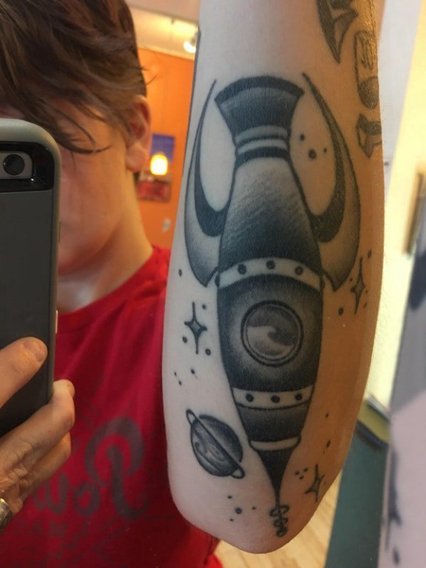手臂纹身图片 男生手臂上黑色的火箭纹身图片