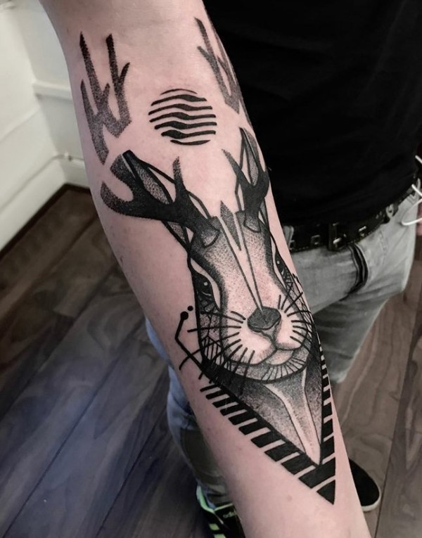 手臂纹身素材 男生手臂上黑色的兔子纹身图片