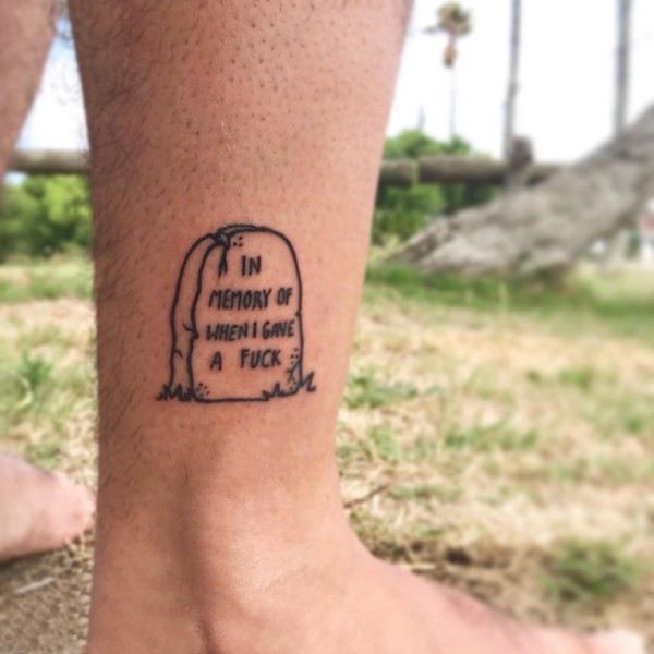 墓碑纹身图 男生小腿上英文和墓碑纹身图片