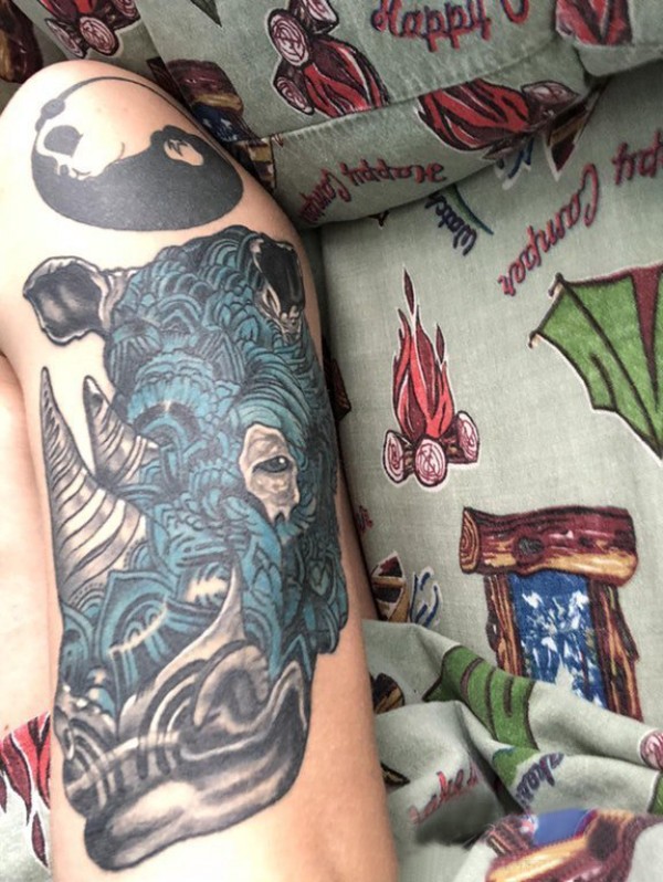 犀牛纹身图案 男生手臂上彩绘的犀牛纹身图片