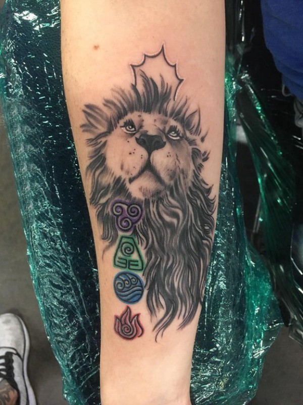狮子王纹身 女生手臂上素描的狮子纹身图片