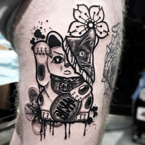 日式招财猫纹身 男生手臂上可爱的招财猫纹身图片
