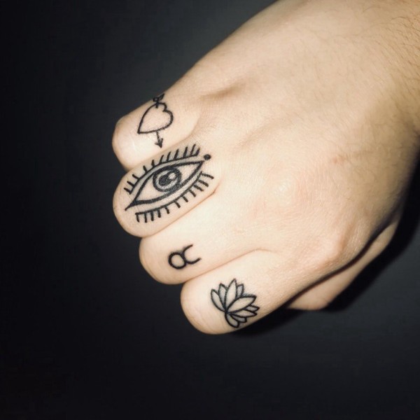 纹身手指 女生手指上眼睛和花朵纹身图片