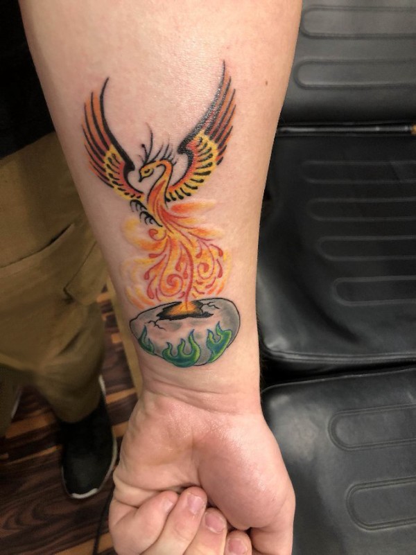 手臂纹身素材 男生手臂上浴火重生的凤凰纹身图片