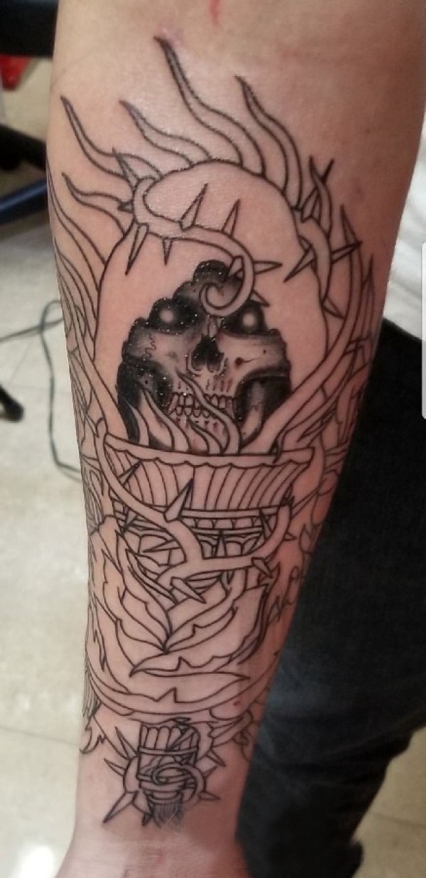 骷髅纹身 男生手臂上线条和骷髅纹身图片