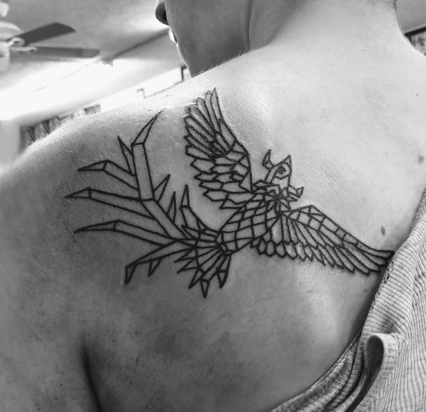 几何动物纹身 男生后背上黑色的凤凰纹身图片