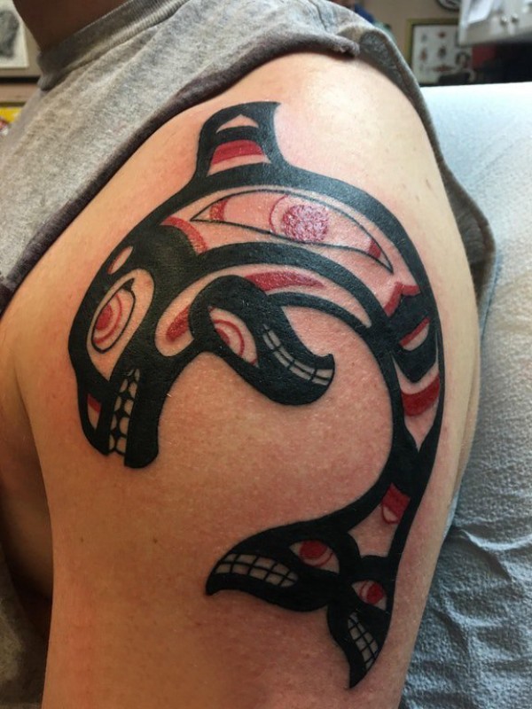 大臂纹身图 男生大臂上凶猛的鲨鱼纹身图片