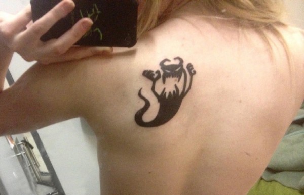 恶魔纹身简单 女生后背上黑色的恶魔纹身图片