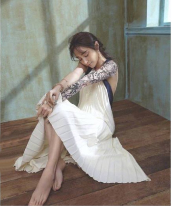 中国纹身明星 姚笛手臂上黑灰纹身图片