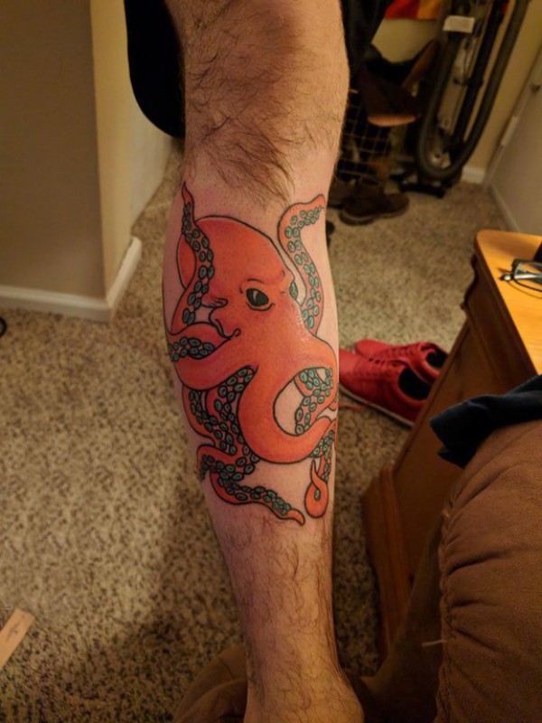 章鱼纹身图案 男生小腿上章鱼纹身图案
