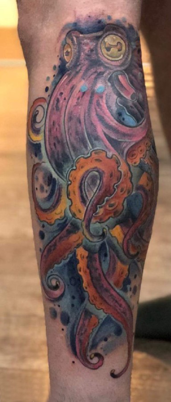 章鱼纹身图案 男生小腿上章鱼纹身图案