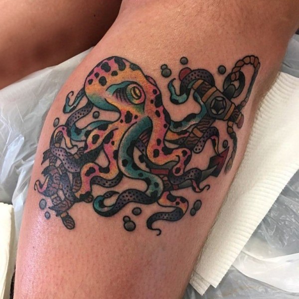 章鱼纹身图案 男生小腿上章鱼纹身图案