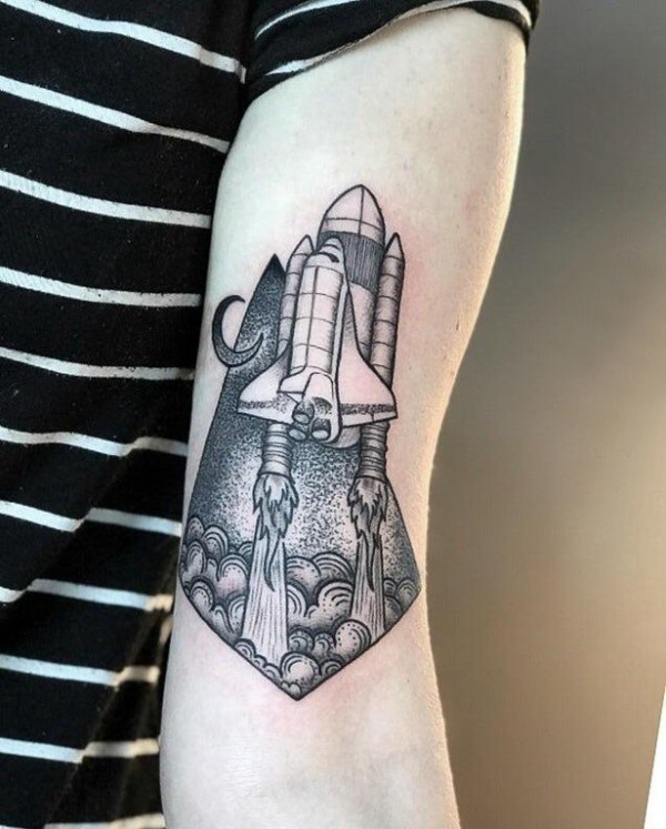 极简线条纹身 女生手臂上发射的火箭纹身图片
