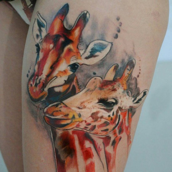 长颈鹿纹身图案 多款彩色纹身动物长颈鹿纹身图案