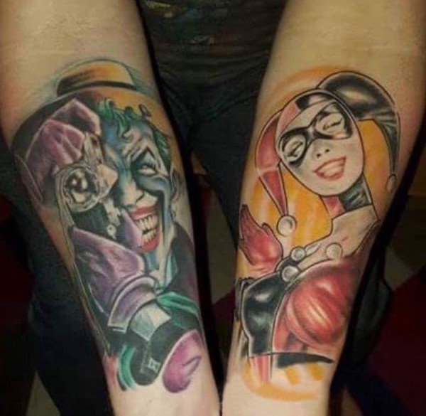 小丑纹身 女生小臂上彩绘的小丑纹身图片