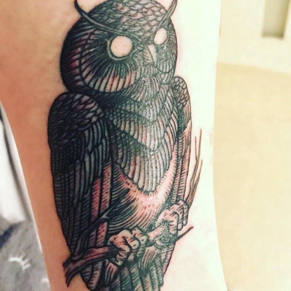纹身猫头鹰 女生小臂上黑色的猫头鹰纹身图片