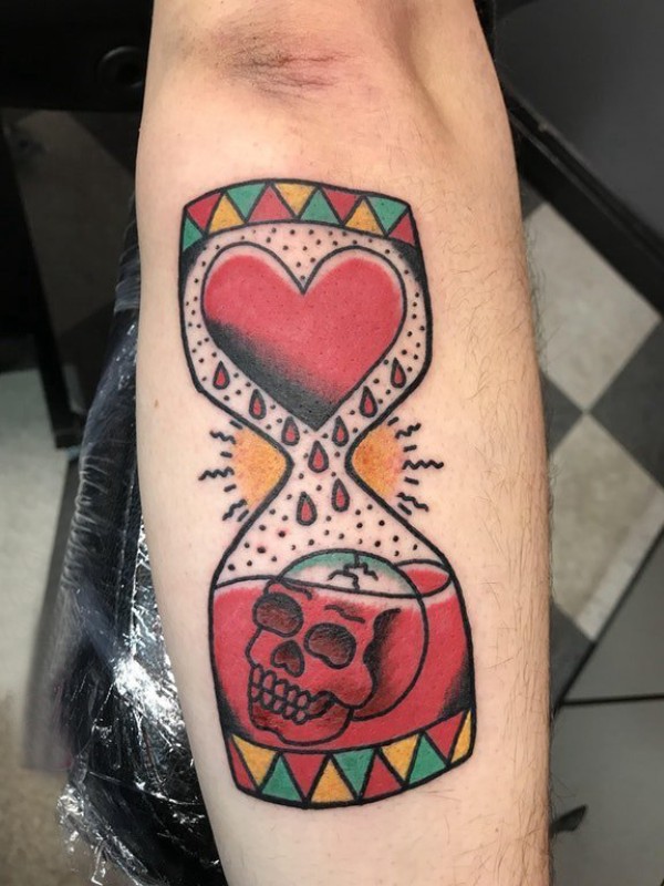 时间沙漏纹身 男生手臂上骷髅和沙漏纹身图片