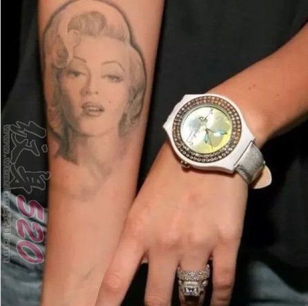 美国纹身明星 明星手臂上素描的玛丽莲梦露纹身图片