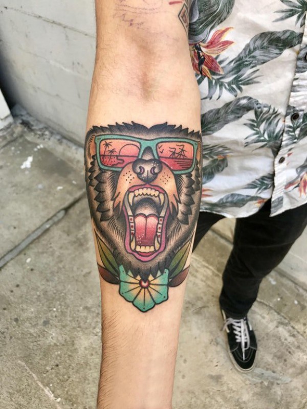 百乐动物纹身 男生小臂上彩绘的百乐动物纹身图片