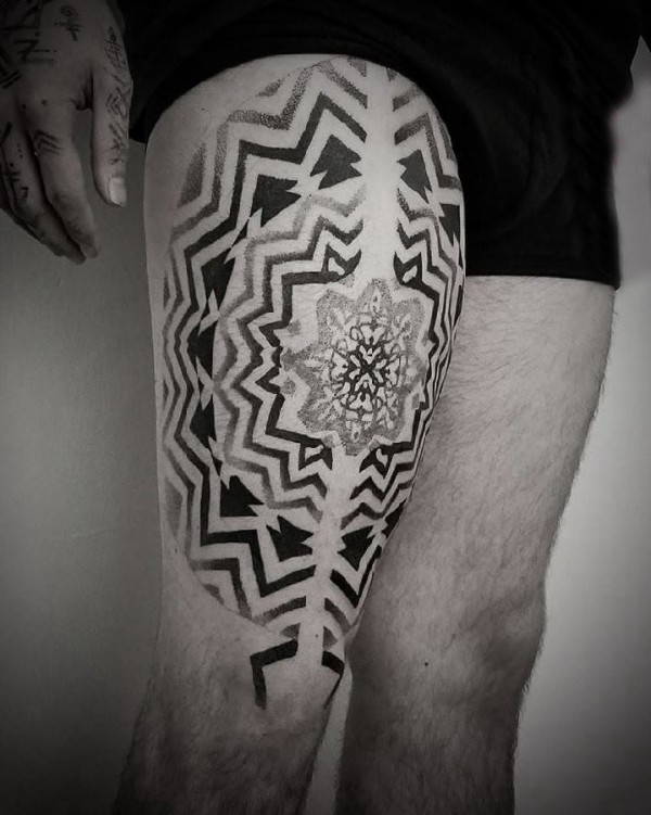 梵花纹身 男生大腿上黑色的梵花纹身图片