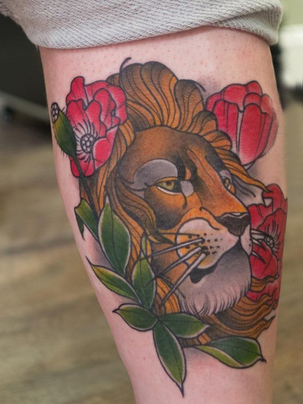 狮子王纹身 女生小腿上彩绘的狮子王纹身图片