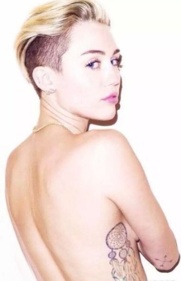 美国纹身明星 麦莉塞勒斯侧腰上黑灰色的捕梦网纹身图片