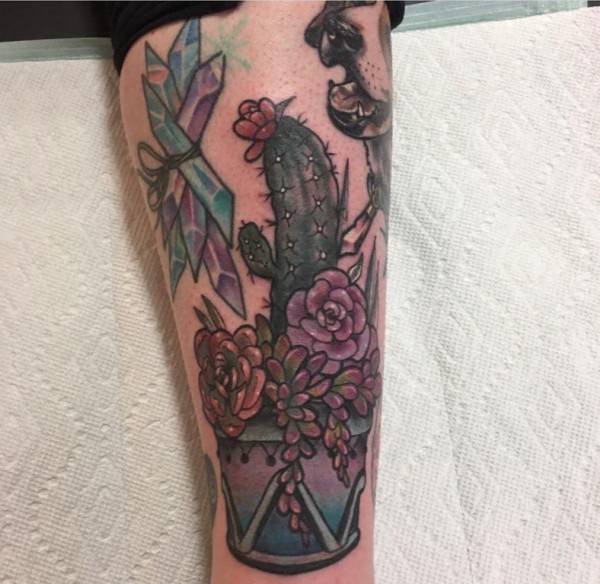 仙人掌纹身 女生小腿上多肉植物和仙人掌纹身图片