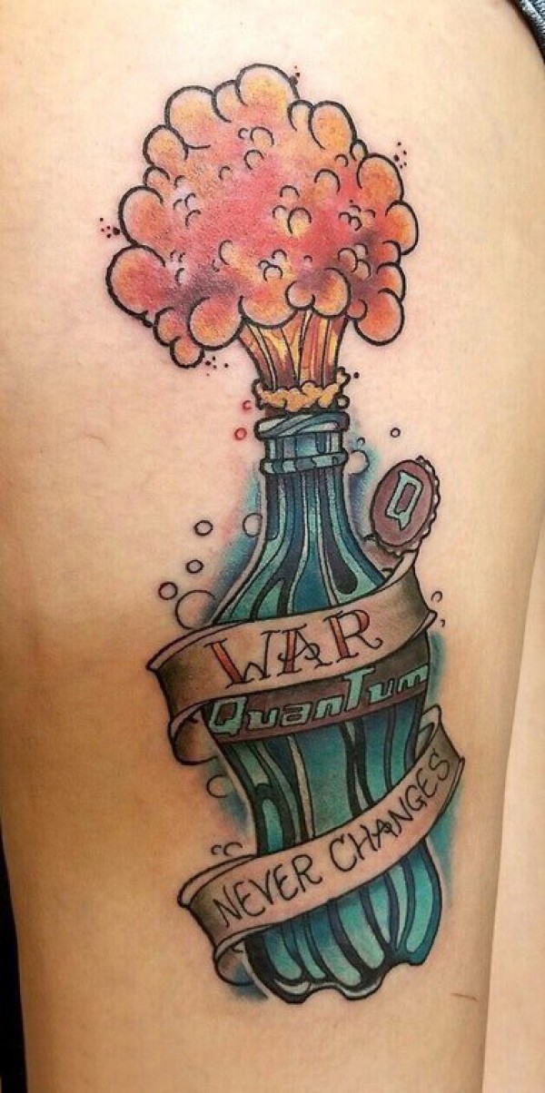 可口可乐纹身瓶 女生大腿上英文和汽水纹身图片
