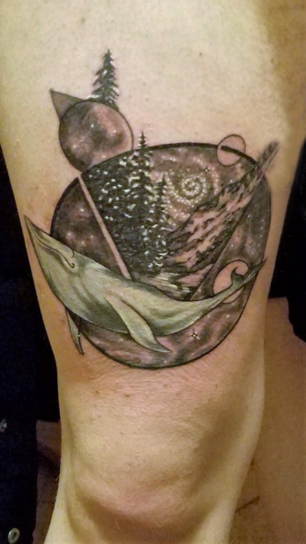 大腿纹身传统 女生大腿上风景和鲸鱼纹身图片