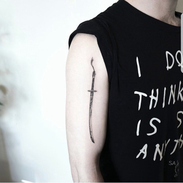 武士刀纹身 男生大臂上锋利的武士刀纹身图片