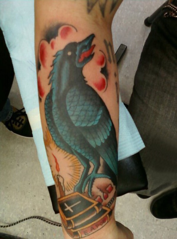 纹身鸟 男生小臂上彩绘的鸟纹身图片