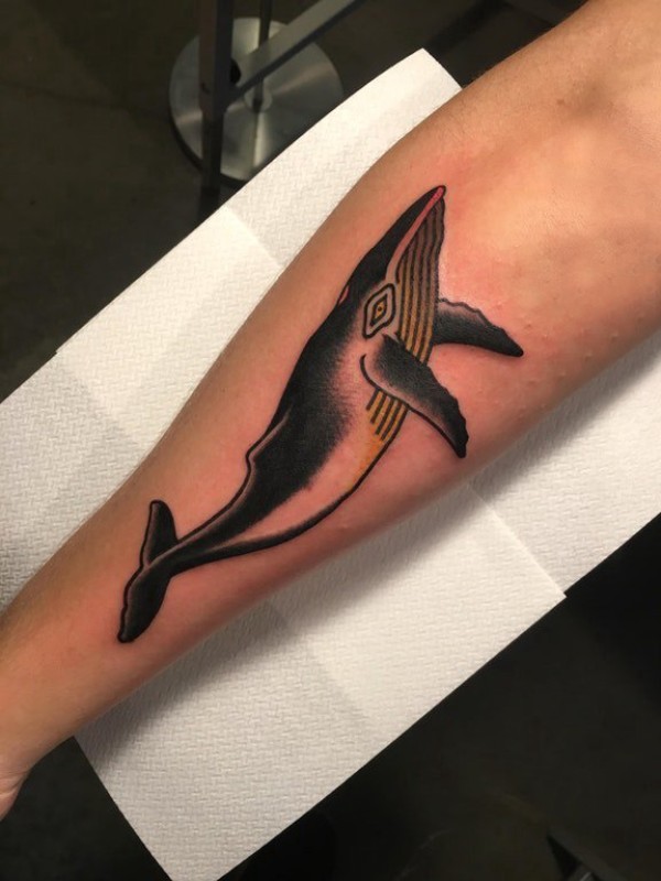 鲸鱼纹身 男生手臂上巨大的鲸鱼纹身图片