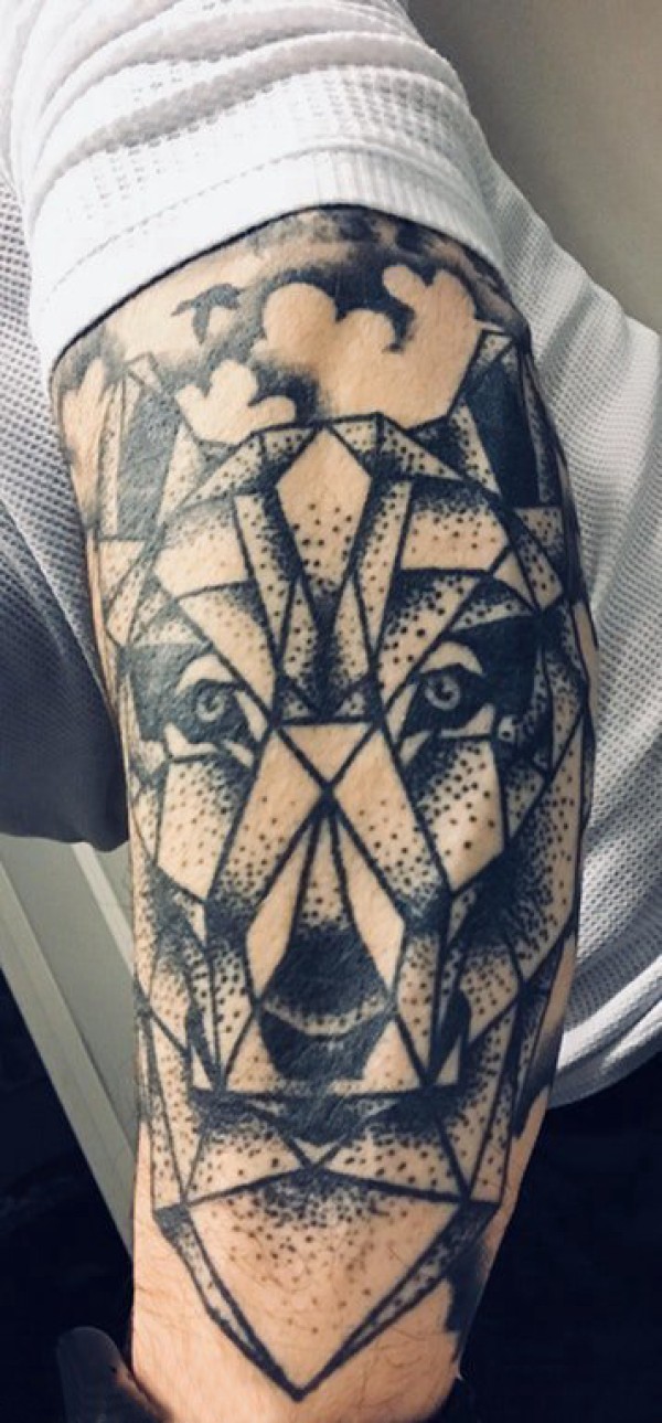 滴血狼头纹身 男生手臂上几何和狼头纹身图片