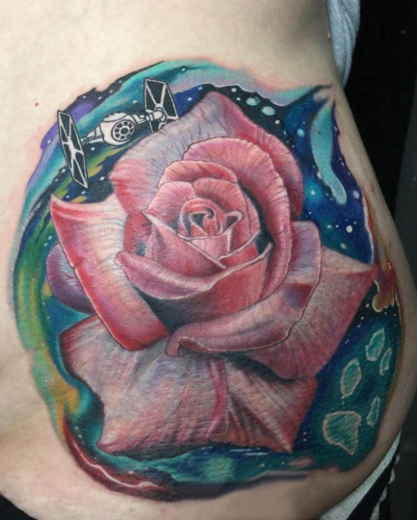 侧腰纹身女 女生侧腰上娇艳的玫瑰纹身图片