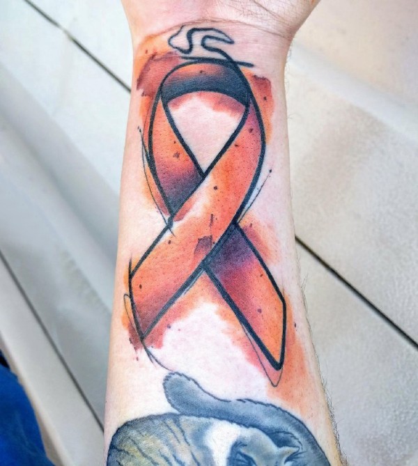 彩色泼墨纹身 男生手臂上彩色的丝带纹身图片